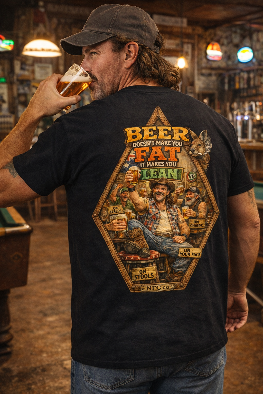 It’s for the Aussie legends with a bit of attitude — the tradies, truckies, farmers, and anyone who lives life with no apologies and no fucks to give. The kind of bloke who rocks a mullet, loves a cold one after a long day, and backs his mates every time.